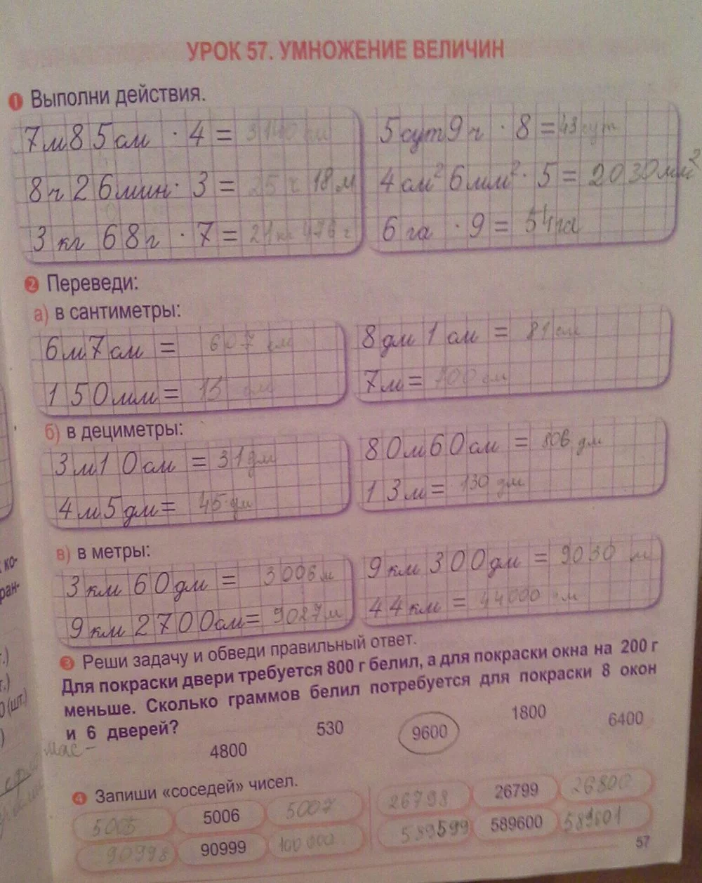 Решения домашних заданий по математике 4 класс Канашевич Т.Н 57 упражнение Рабочая тетрадь