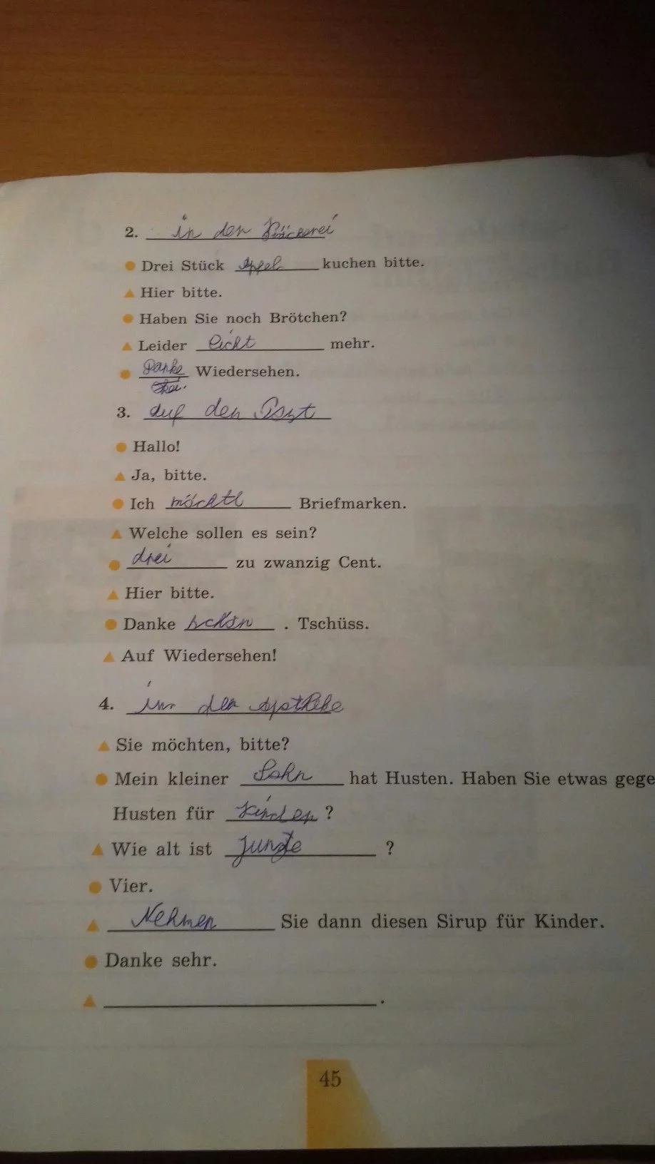 Решения домашних заданий по немецкому языку 5 класс Артемова Н.А. 45 упражнение Рабочая тетрадь