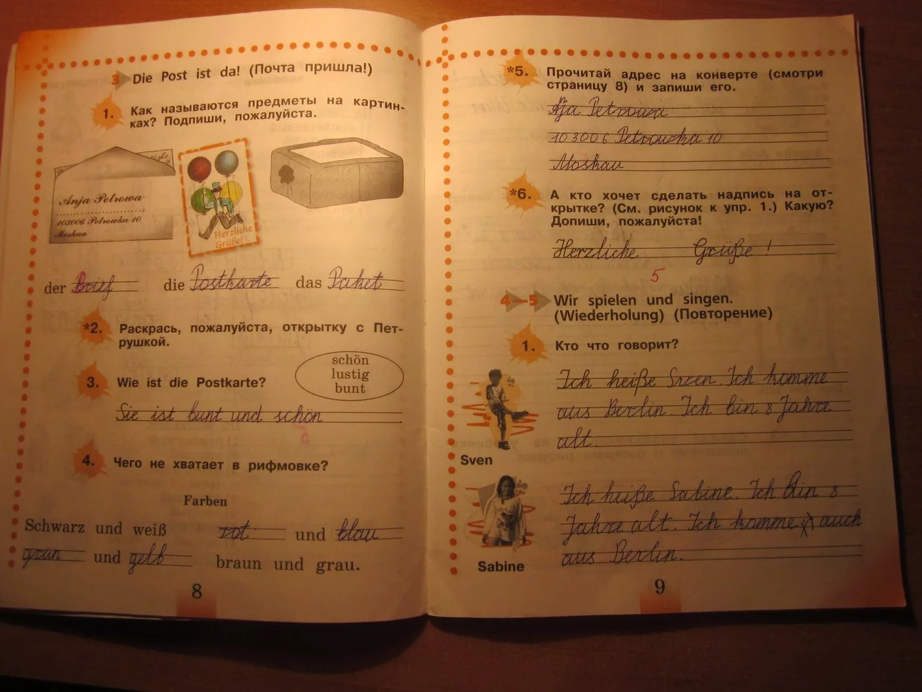 Решения домашних заданий по немецкому языку 2 класс Бим И.Л., Рыжова Л.И. 8-9 упражнение Рабочая тетрадь