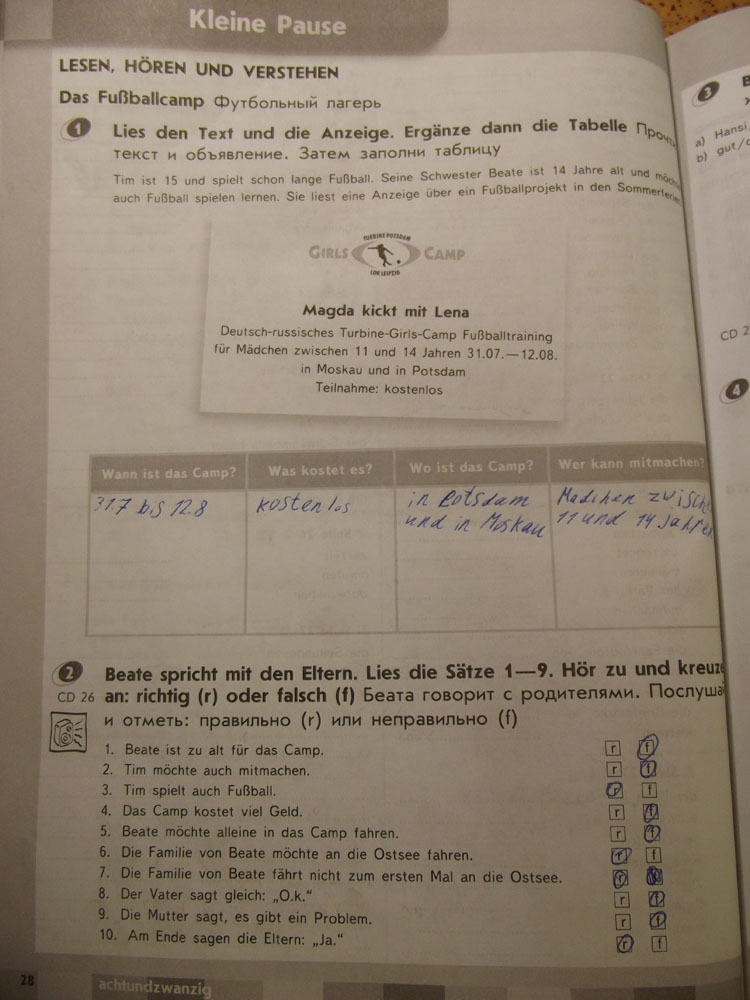 Решения домашних заданий по немецкому языку 6 класс Аверин М.М., Джин Ф., Рорман Л. 28 упражнение Рабочая тетрадь