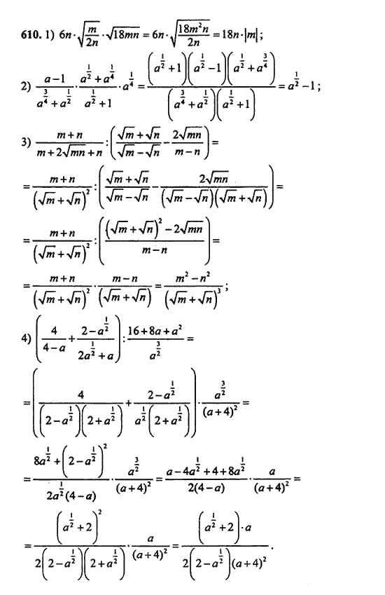 Решения домашних заданий по алгебре 9 класс Алимов Ш.А., Колягин Ю.М. 610 упражнение