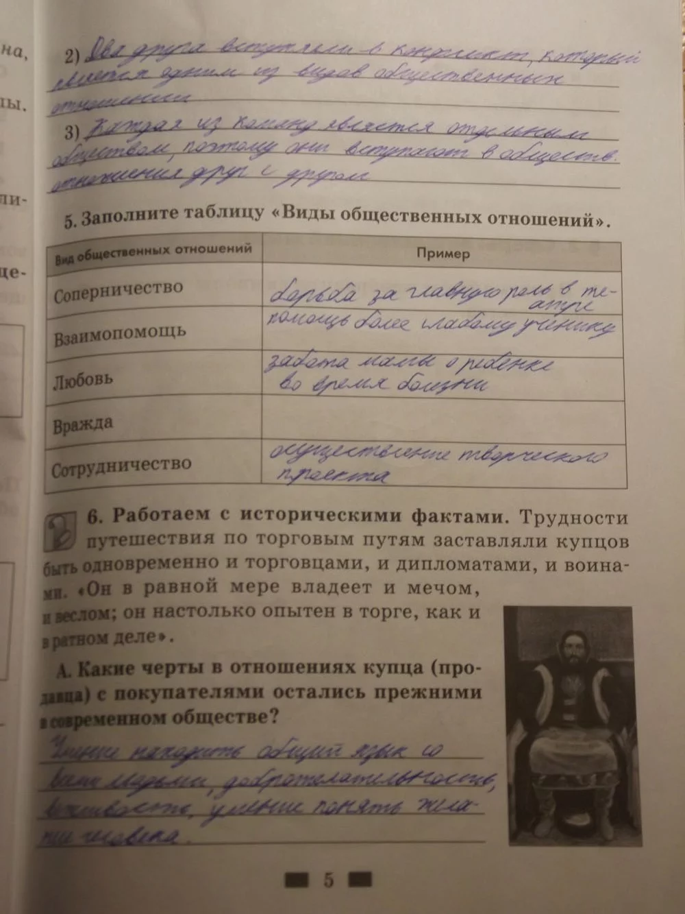 Решения домашних заданий по обществознанию 6 класс Хромова И.С. 5 упражнение Рабочая тетрадь