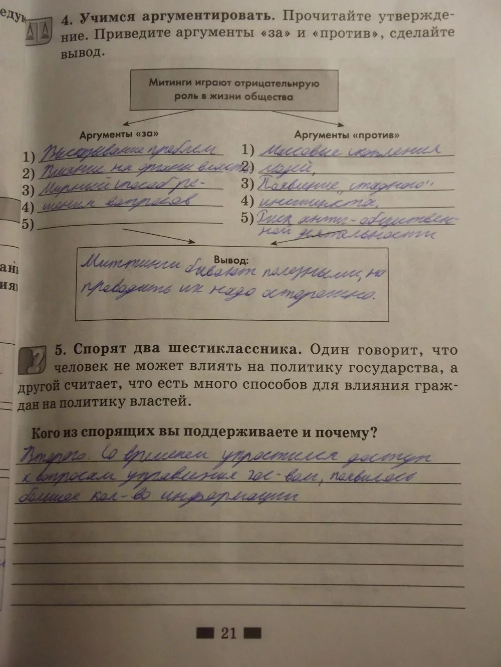 Решения домашних заданий по обществознанию 6 класс Хромова И.С. 21 упражнение Рабочая тетрадь