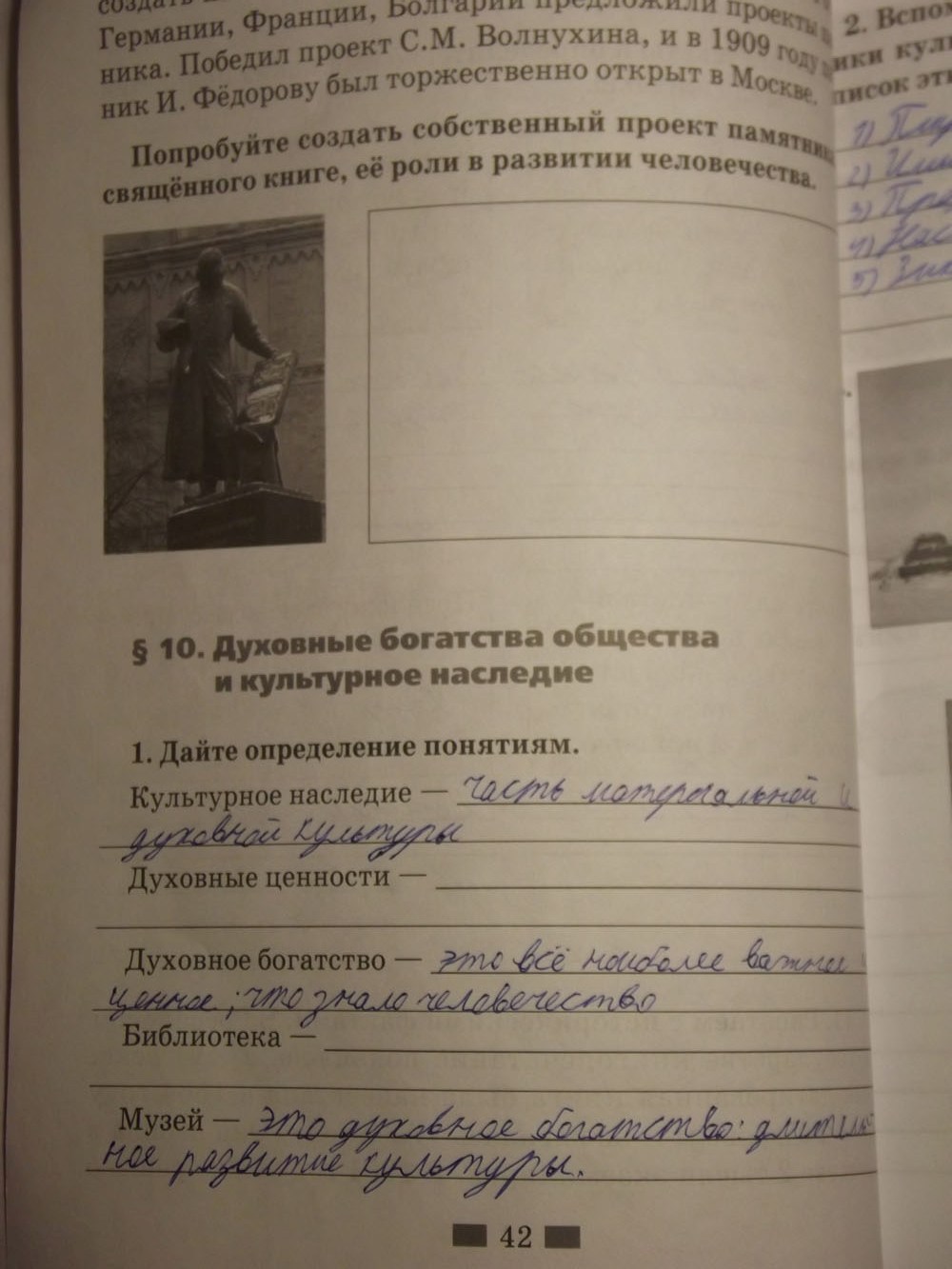 Решения домашних заданий по обществознанию 6 класс Хромова И.С. 42 упражнение Рабочая тетрадь