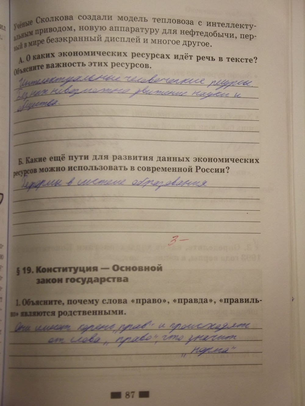 Решения домашних заданий по обществознанию 6 класс Хромова И.С. 87 упражнение Рабочая тетрадь