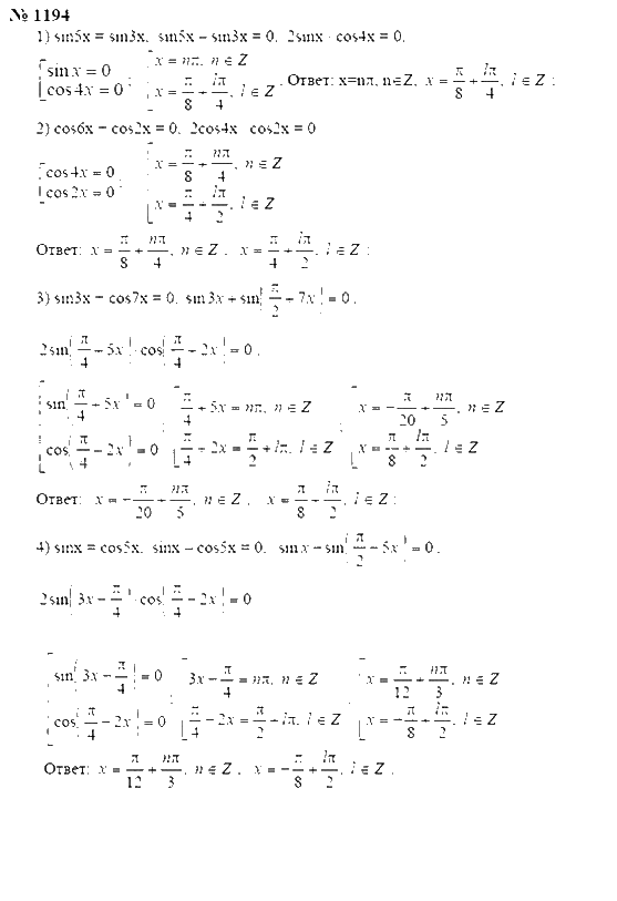 Решения домашних заданий по алгебре 10, 11 класс Алимов Ш.А. 1194 упражнение