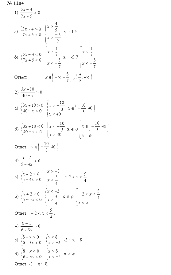 Решения домашних заданий по алгебре 10, 11 класс Алимов Ш.А. 1204 упражнение