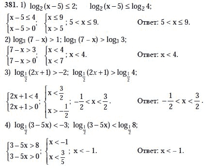 Решения домашних заданий по алгебре 10, 11 класс Алимов Ш.А. 381 упражнение