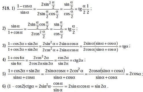 Решения домашних заданий по алгебре 10, 11 класс Алимов Ш.А. 518 упражнение