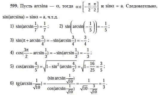 Решения домашних заданий по алгебре 10, 11 класс Алимов Ш.А. 599 упражнение