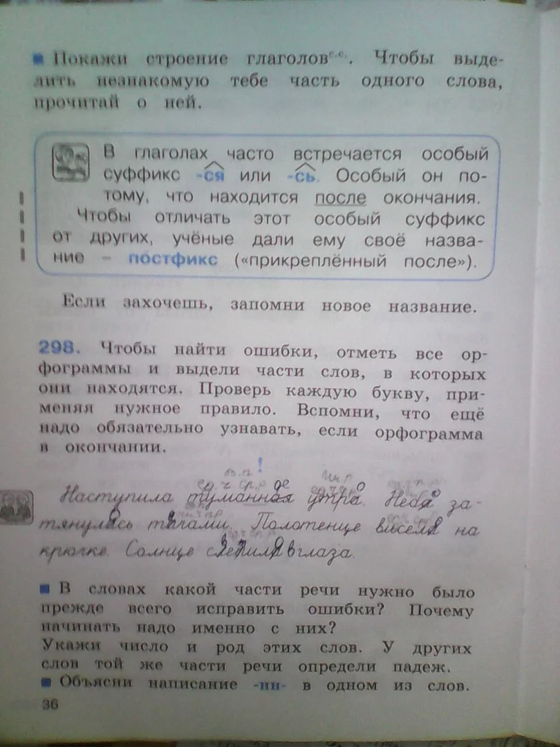 Решения домашних заданий по русскому языку 2 класс Соловейчик М.С., Кузьменко Н.С. 36 упражнение Рабочая тетрадь