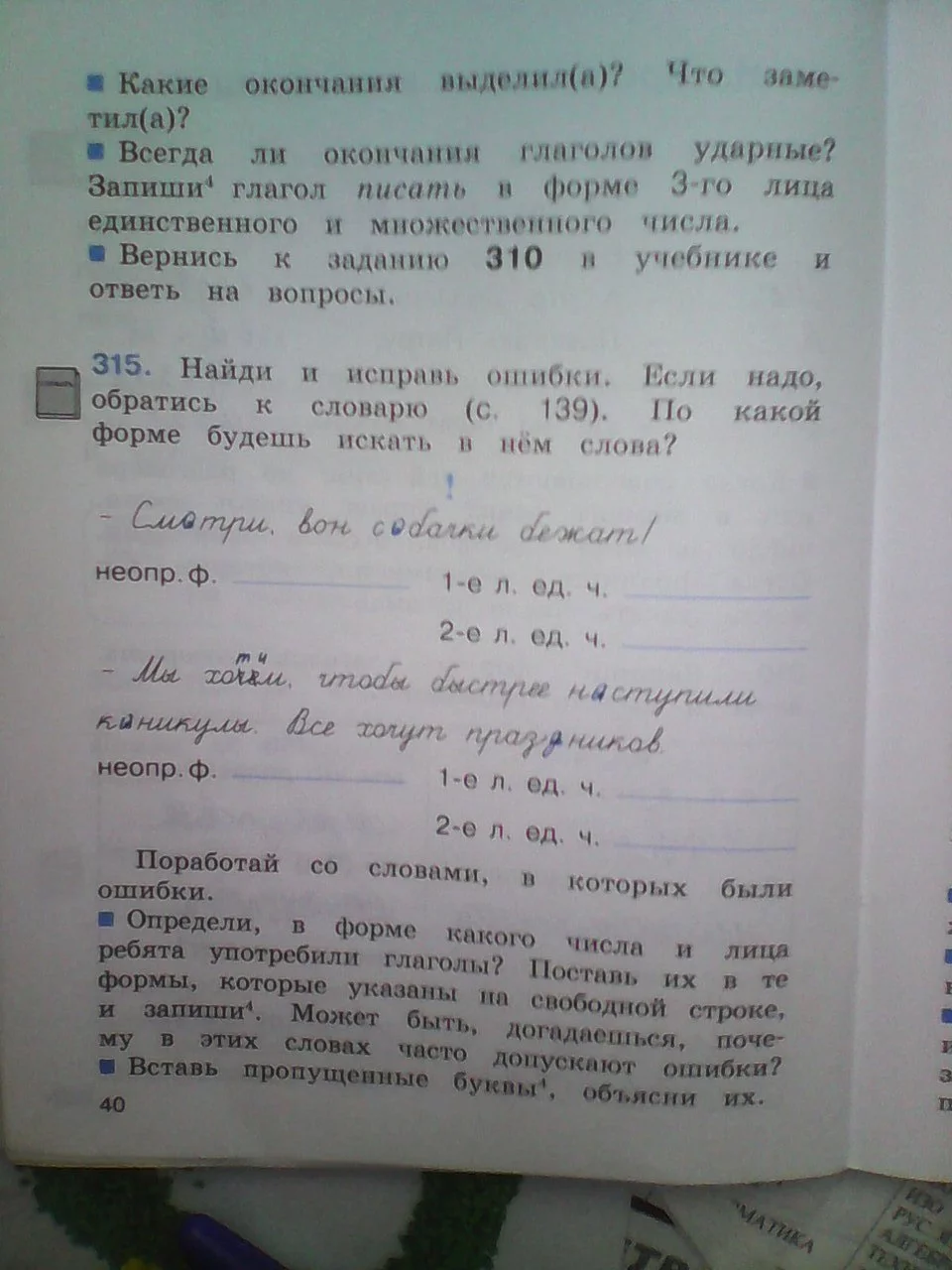 Решения домашних заданий по русскому языку 2 класс Соловейчик М.С., Кузьменко Н.С. 40 упражнение Рабочая тетрадь