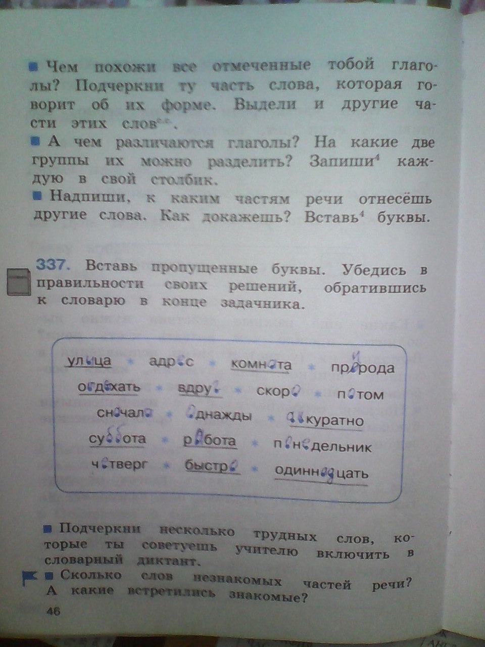 Решения домашних заданий по русскому языку 2 класс Соловейчик М.С., Кузьменко Н.С. 46 упражнение Рабочая тетрадь