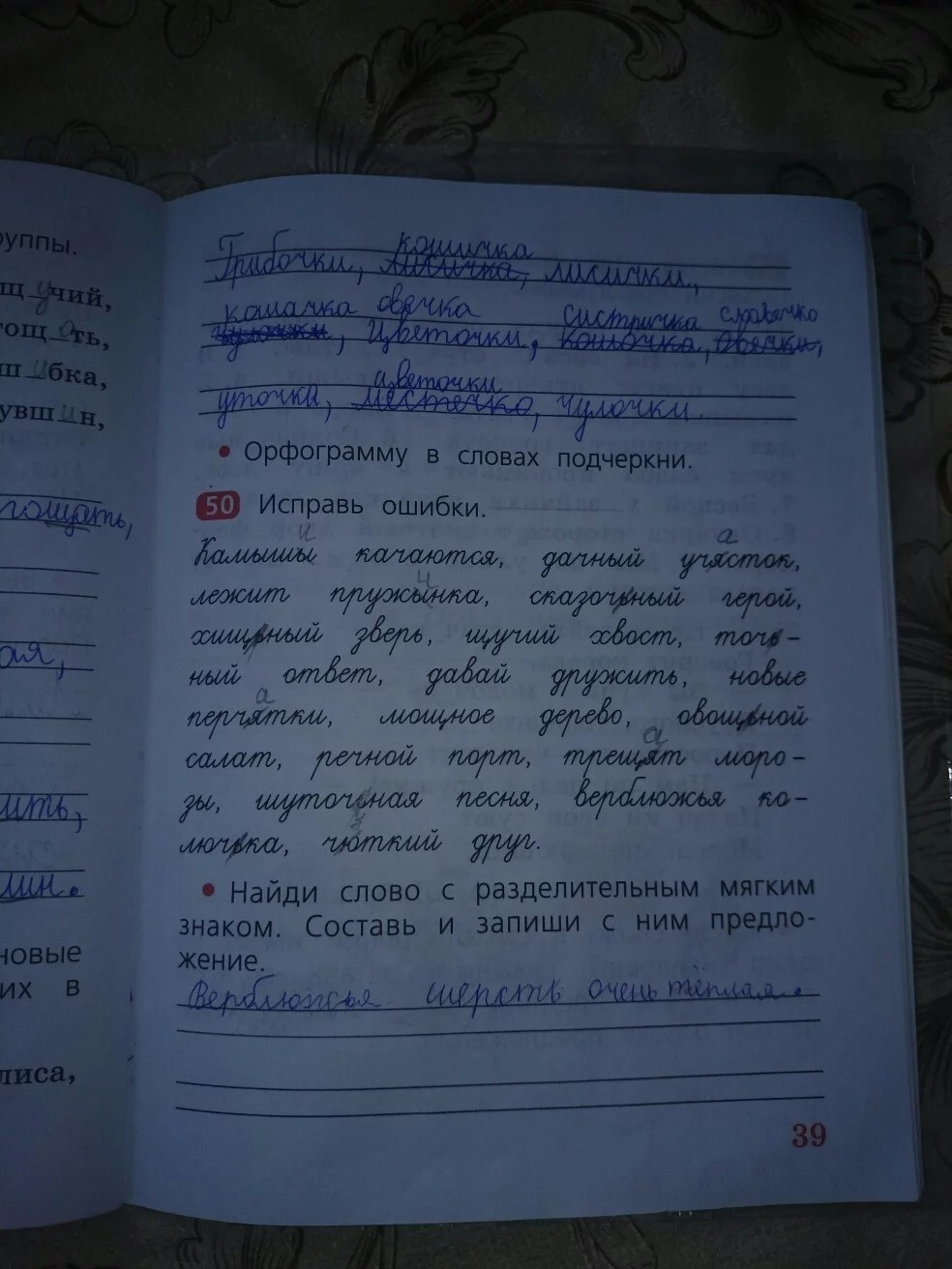 Решения домашних заданий по русскому языку 2 класс Песняева Н.А. 39 упражнение Рабочая тетрадь