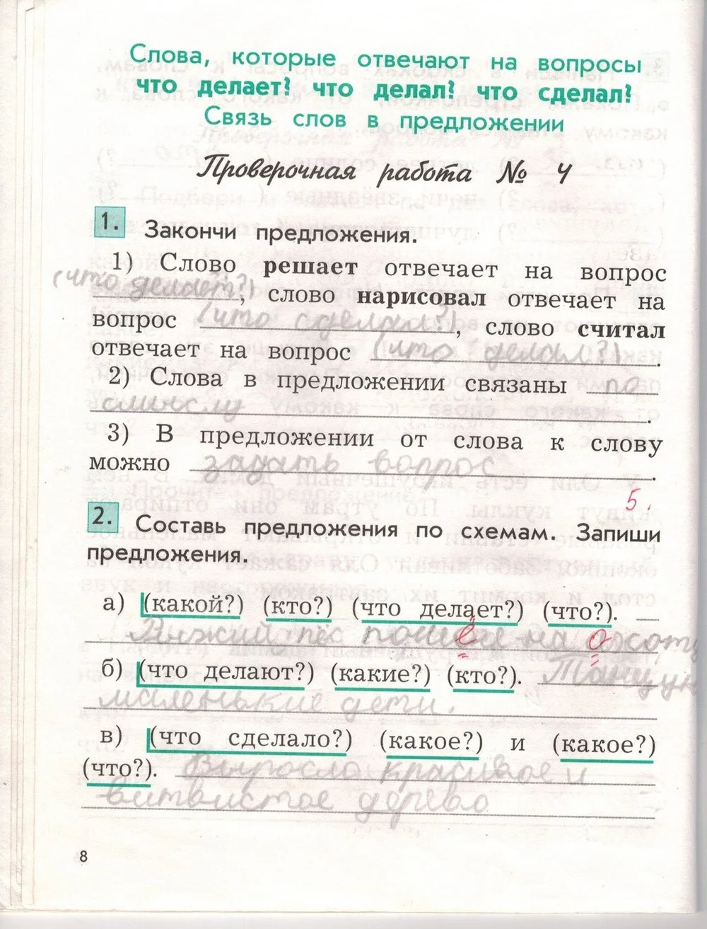 Решения домашних заданий по русскому языку 2 класс Бунеева Е.В. 8 упражнение Рабочая тетрадь