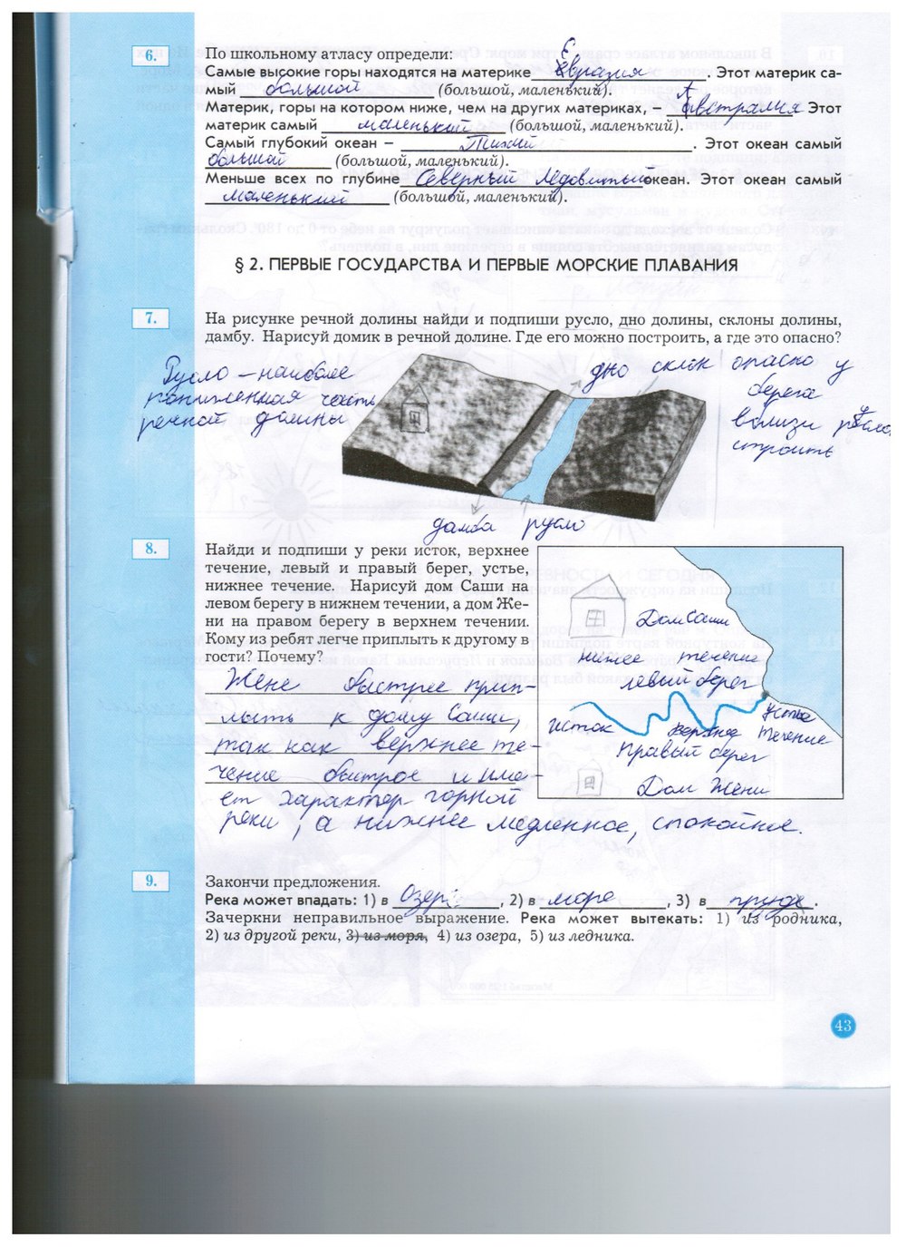 Решения домашних заданий по окружающему миру 5 класс Бурский О.В. 43 упражнение Рабочая тетрадь