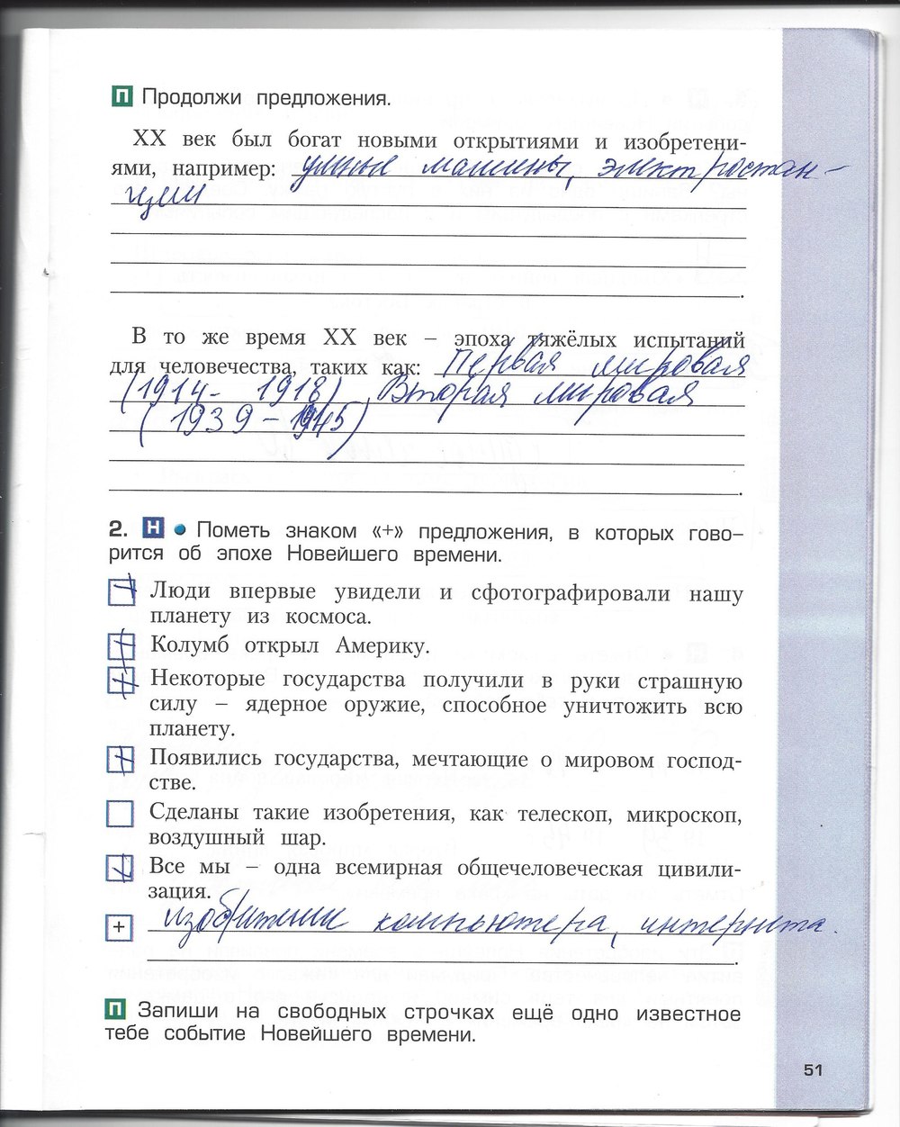 Решения домашних заданий по окружающему миру 4 класс Харитонова Н.В., Сизова Е.В., Стойка Е.И. 51 упражнение Рабочая тетрадь