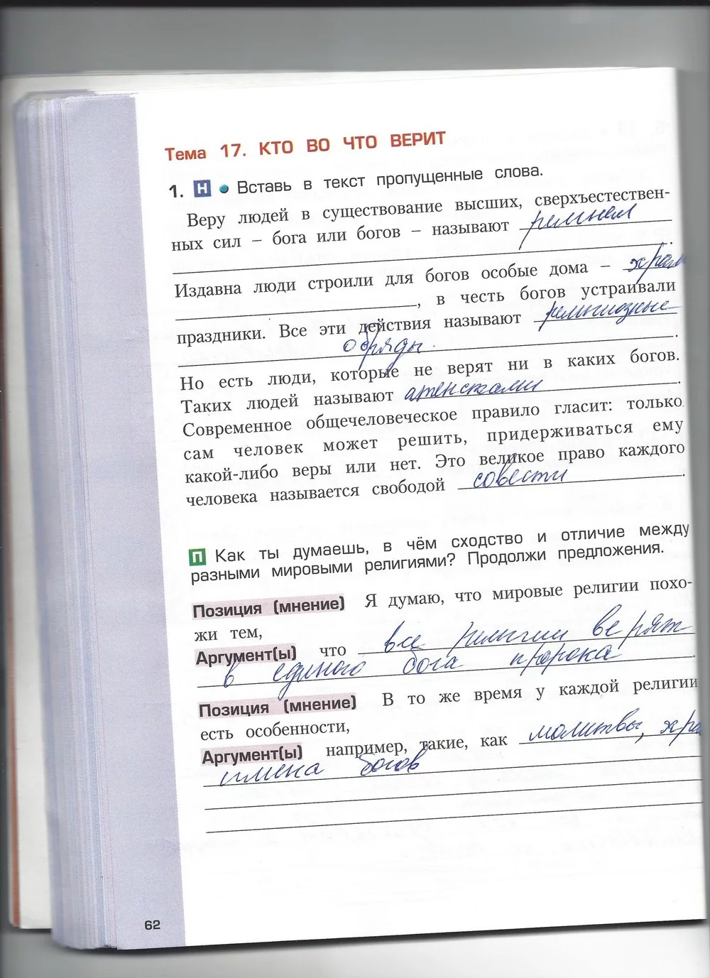 Решения домашних заданий по окружающему миру 4 класс Харитонова Н.В., Сизова Е.В., Стойка Е.И. 62 упражнение Рабочая тетрадь