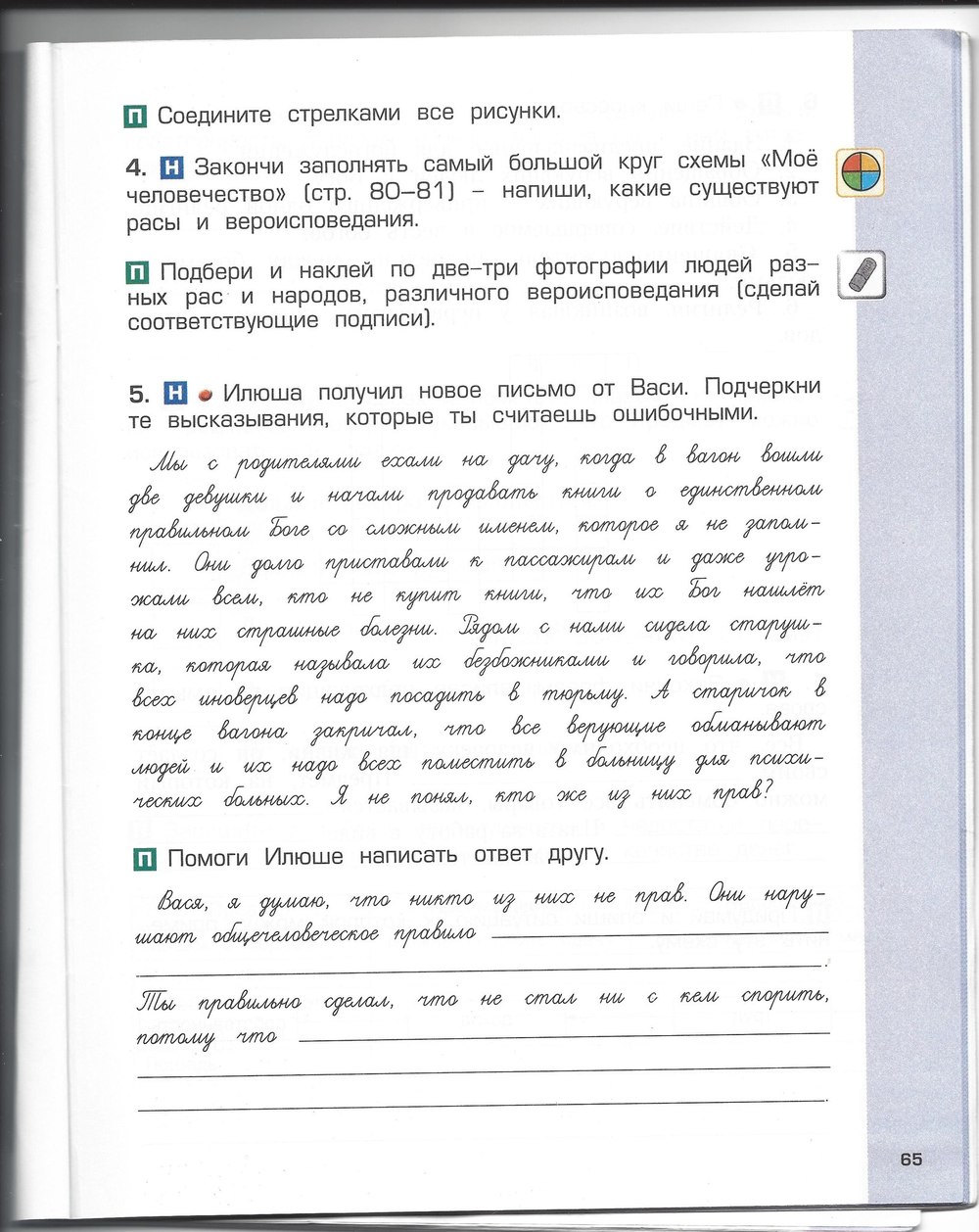 Решения домашних заданий по окружающему миру 4 класс Харитонова Н.В., Сизова Е.В., Стойка Е.И. 65 упражнение Рабочая тетрадь