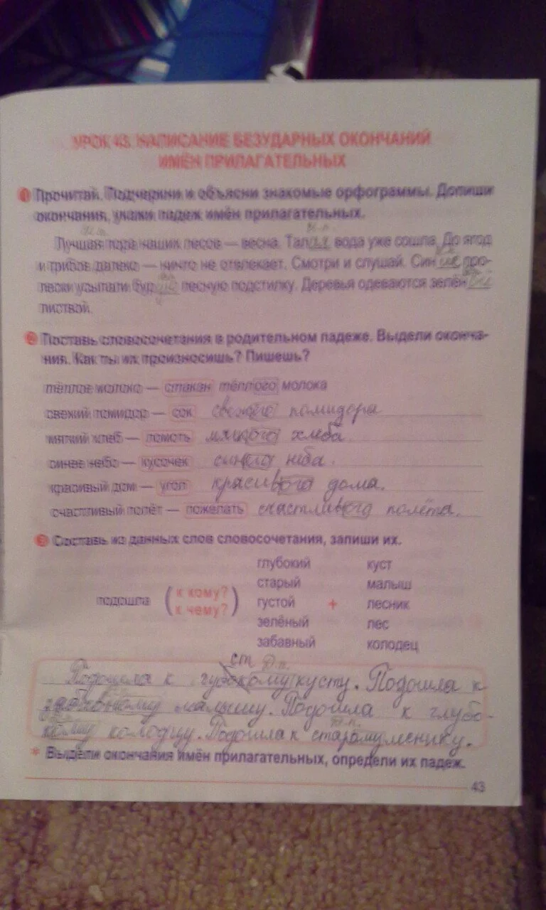 Решения домашних заданий по русскому языку 4 класс Романенко О.В. 43 упражнение Рабочая тетрадь