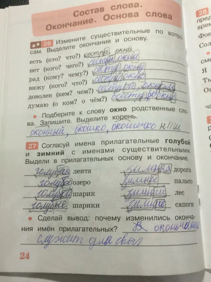 Решения домашних заданий по русскому языку 3 класс Песняева Н.А., Анащенкова С.В. 24 упражнение Рабочая тетрадь