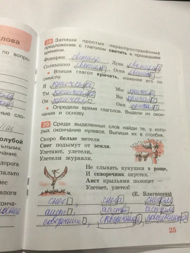 Решения домашних заданий по русскому языку 3 класс Песняева Н.А., Анащенкова С.В. 25 упражнение Рабочая тетрадь