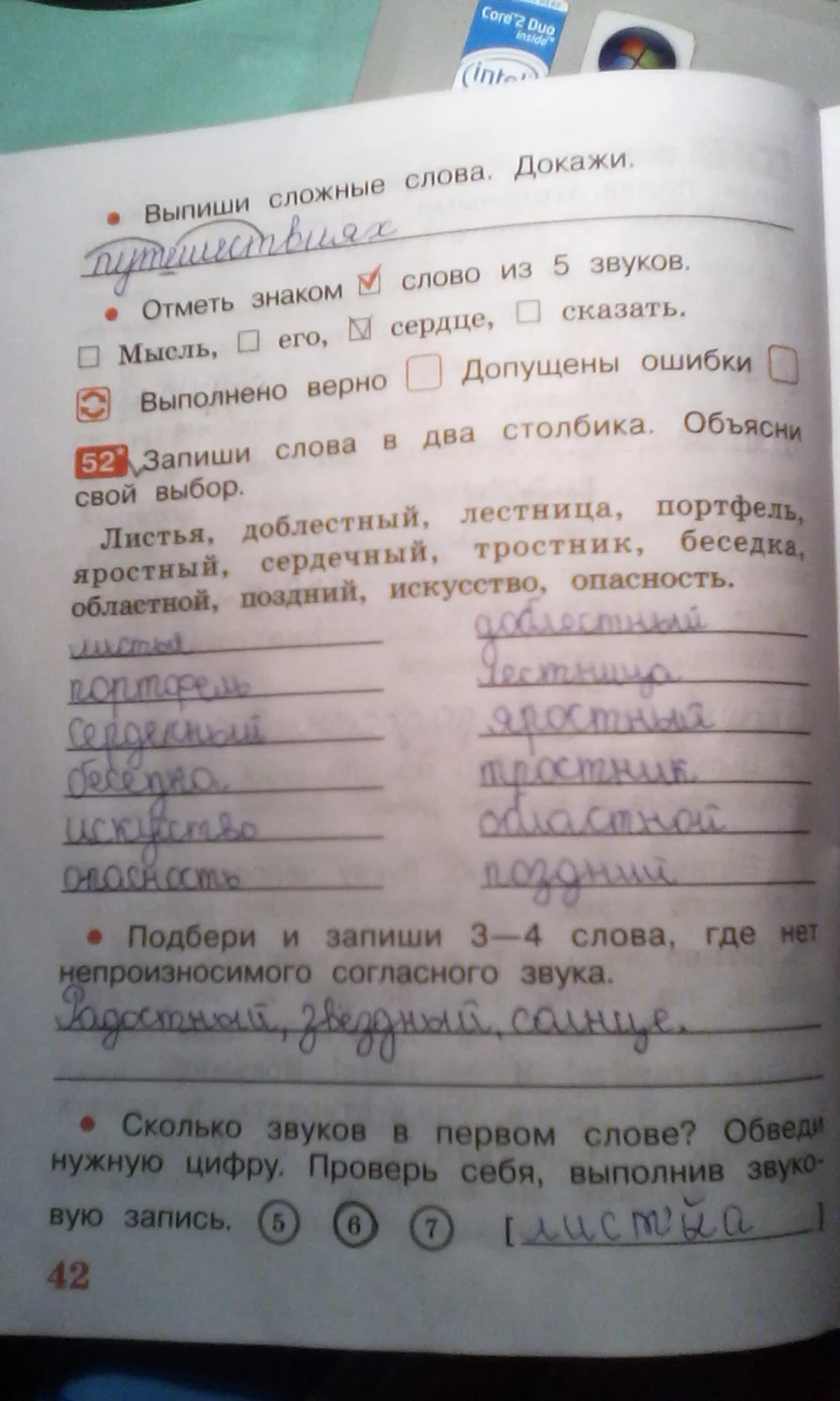 Решения домашних заданий по русскому языку 3 класс Песняева Н.А., Анащенкова С.В. 42 упражнение Рабочая тетрадь