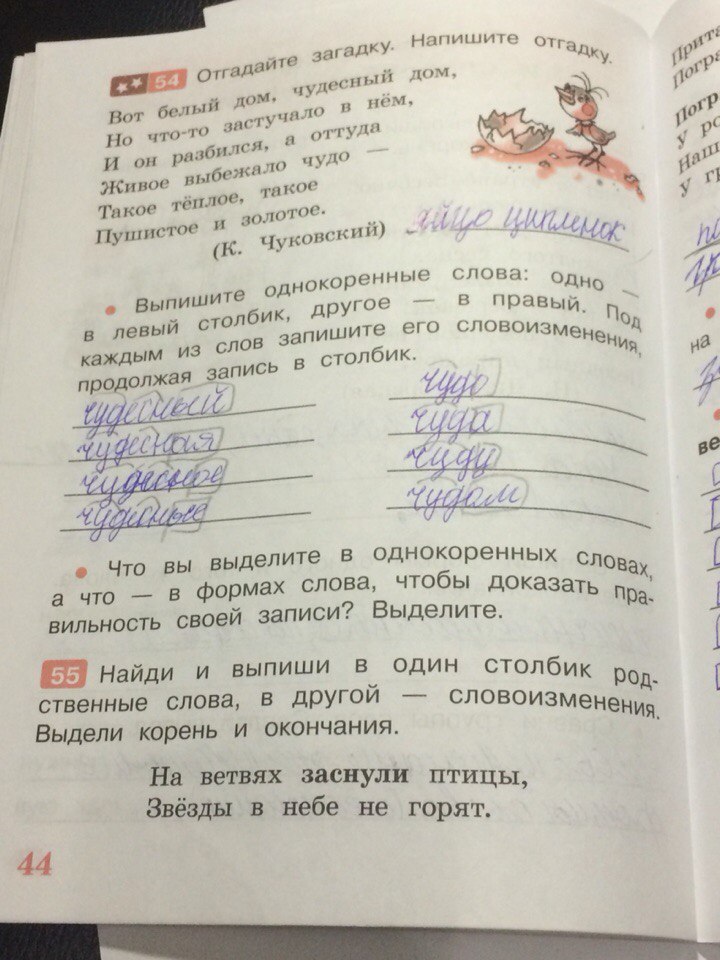Решения домашних заданий по русскому языку 3 класс Песняева Н.А., Анащенкова С.В. 44 упражнение Рабочая тетрадь