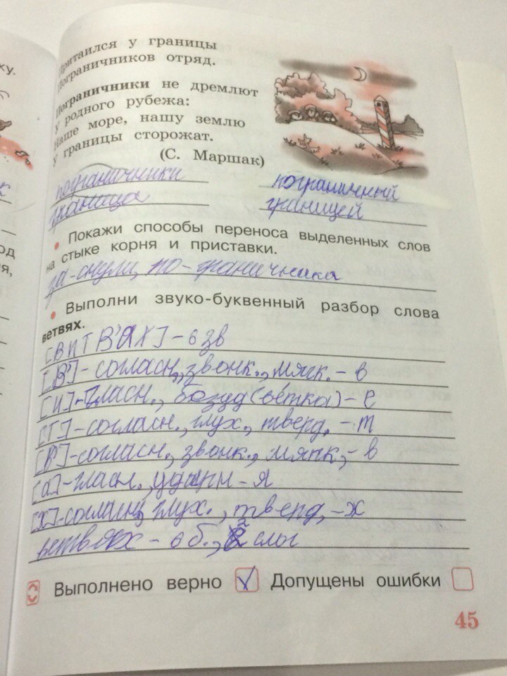 Решения домашних заданий по русскому языку 3 класс Песняева Н.А., Анащенкова С.В. 45 упражнение Рабочая тетрадь