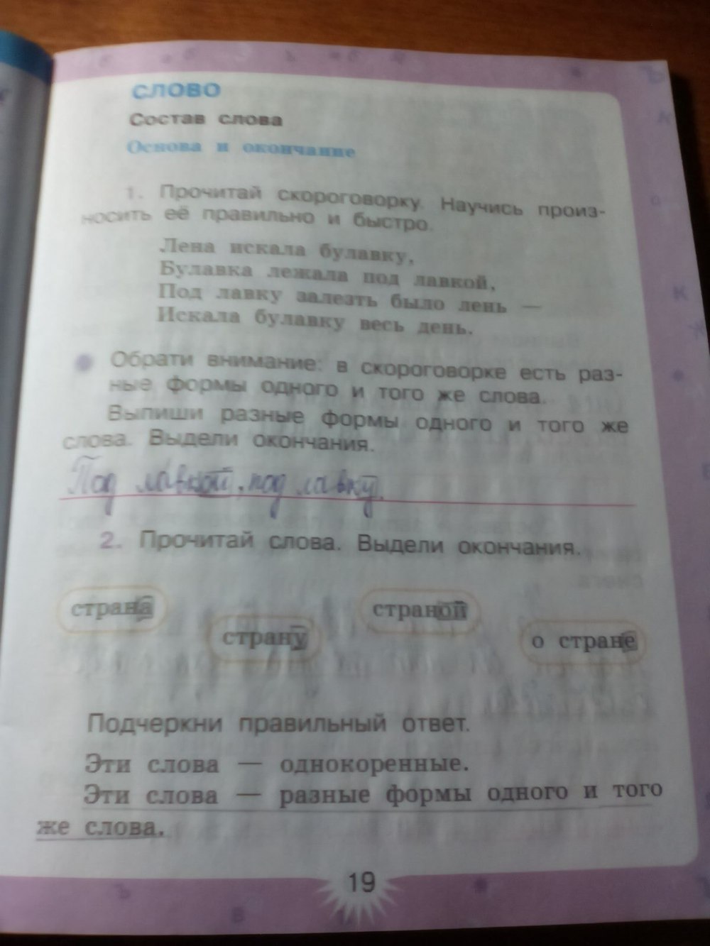 Решения домашних заданий по русскому языку 3 класс Зеленина Л.М., Хохлова Т.Е. 19 упражнение Рабочая тетрадь