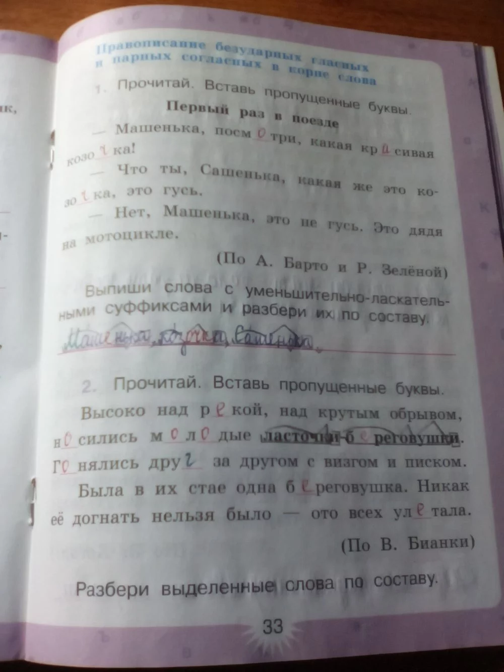 Решения домашних заданий по русскому языку 3 класс Зеленина Л.М., Хохлова Т.Е. 33 упражнение Рабочая тетрадь