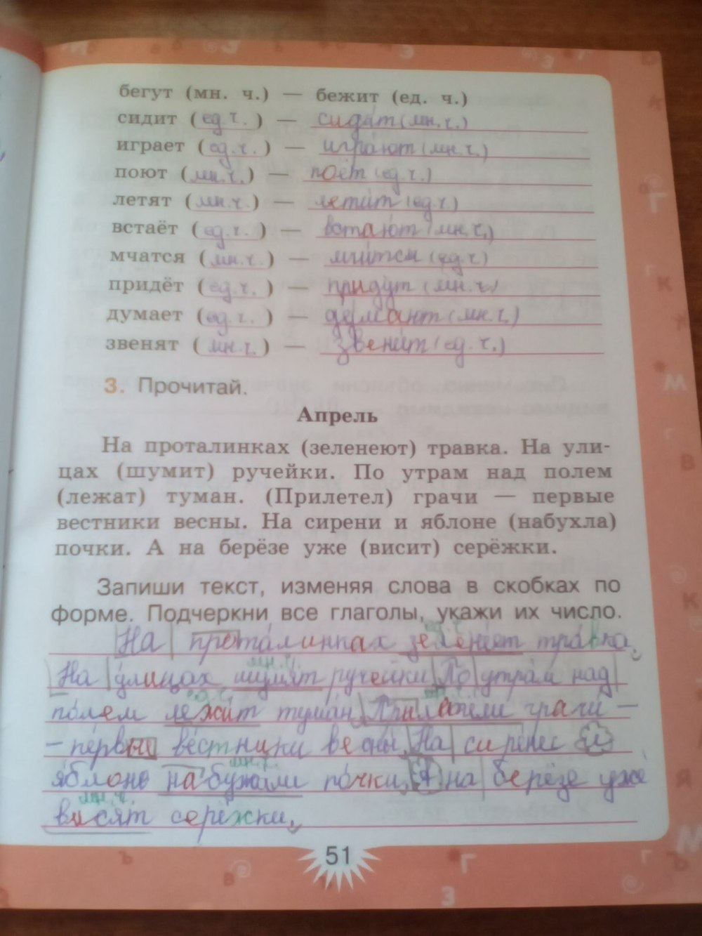 Решения домашних заданий по русскому языку 3 класс Зеленина Л.М., Хохлова Т.Е. 51 упражнение Рабочая тетрадь