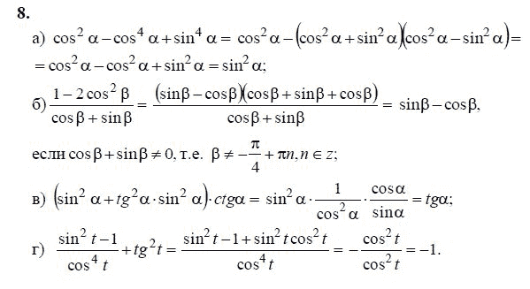 Решения домашних заданий по алгебре 10, 11 класс Колмогоров А.Н. 8 упражнение