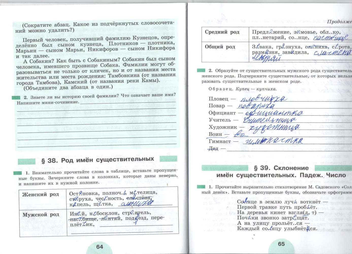 Решения домашних заданий по русскому языку 5 класс Рыбченкова Л.М., Роговик Т.Н. 64-65 упражнение Рабочая тетрадь