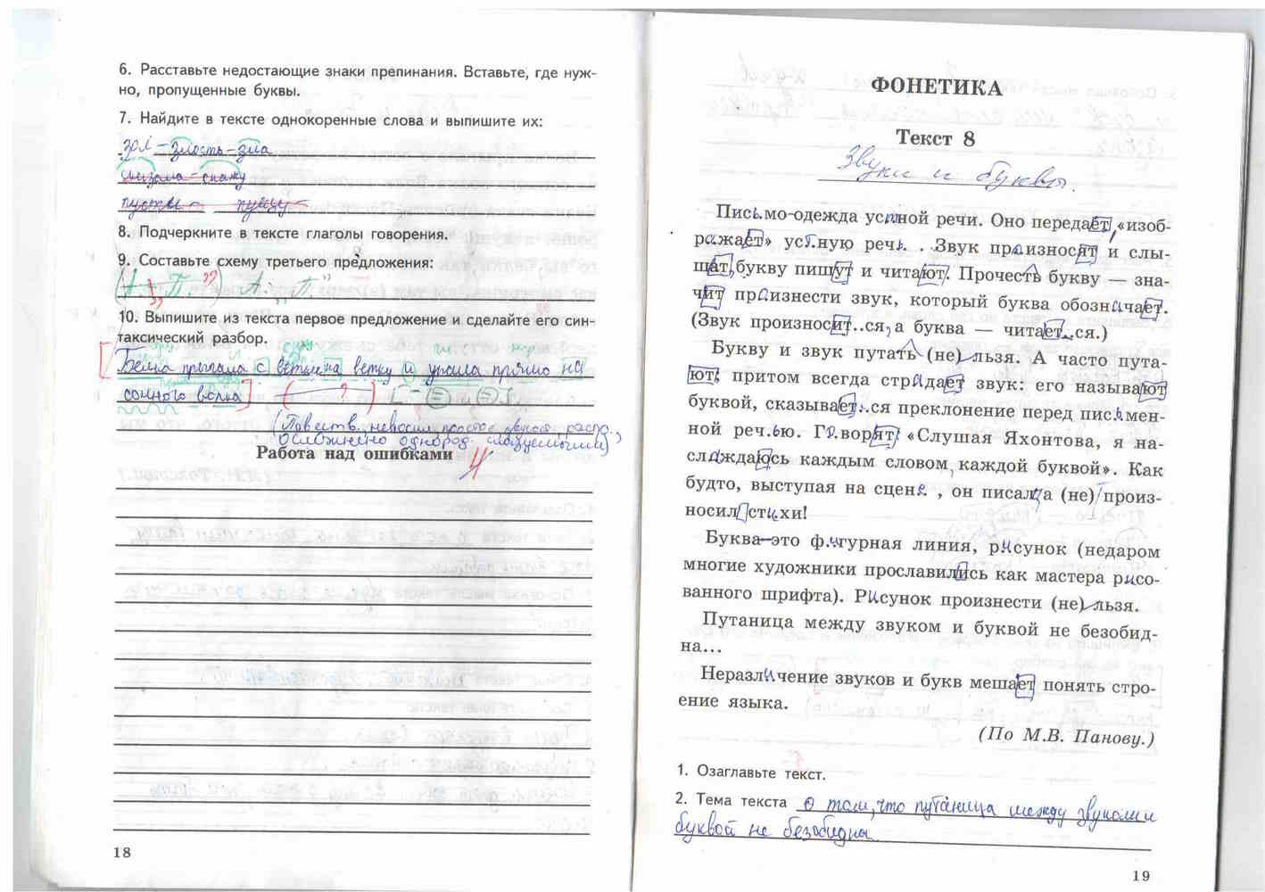 Решения домашних заданий по русскому языку 5 класс Малюшкин А.Б 18-19 упражнение Рабочая тетрадь