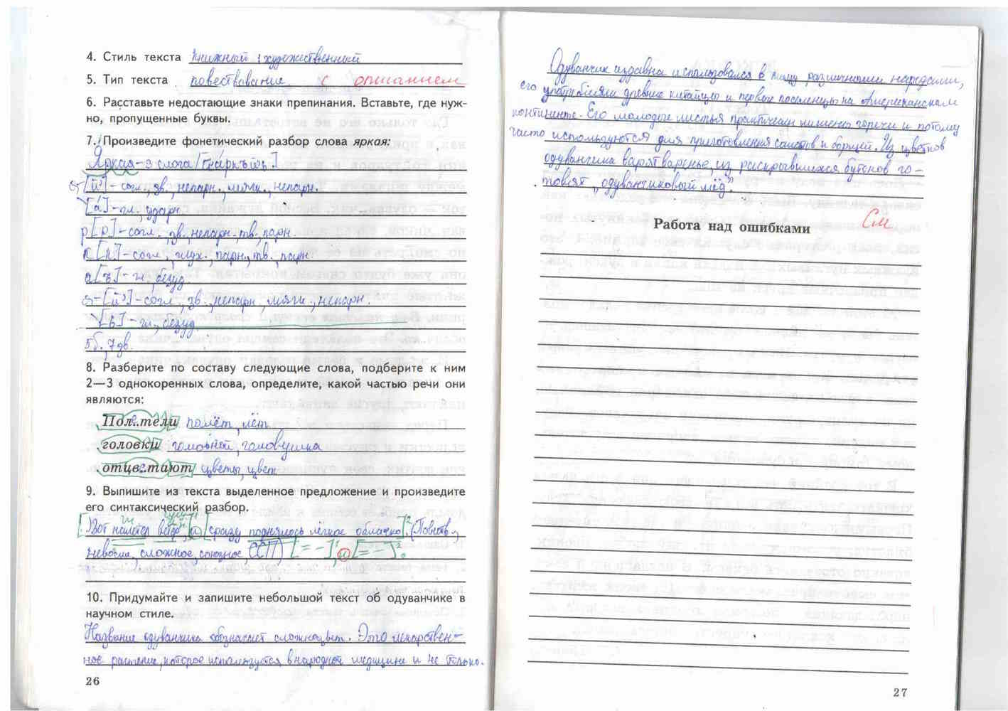 Решения домашних заданий по русскому языку 5 класс Малюшкин А.Б 26-27 упражнение Рабочая тетрадь