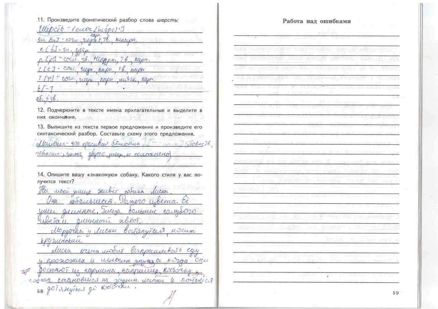 Решения домашних заданий по русскому языку 5 класс Малюшкин А.Б 58-59 упражнение Рабочая тетрадь