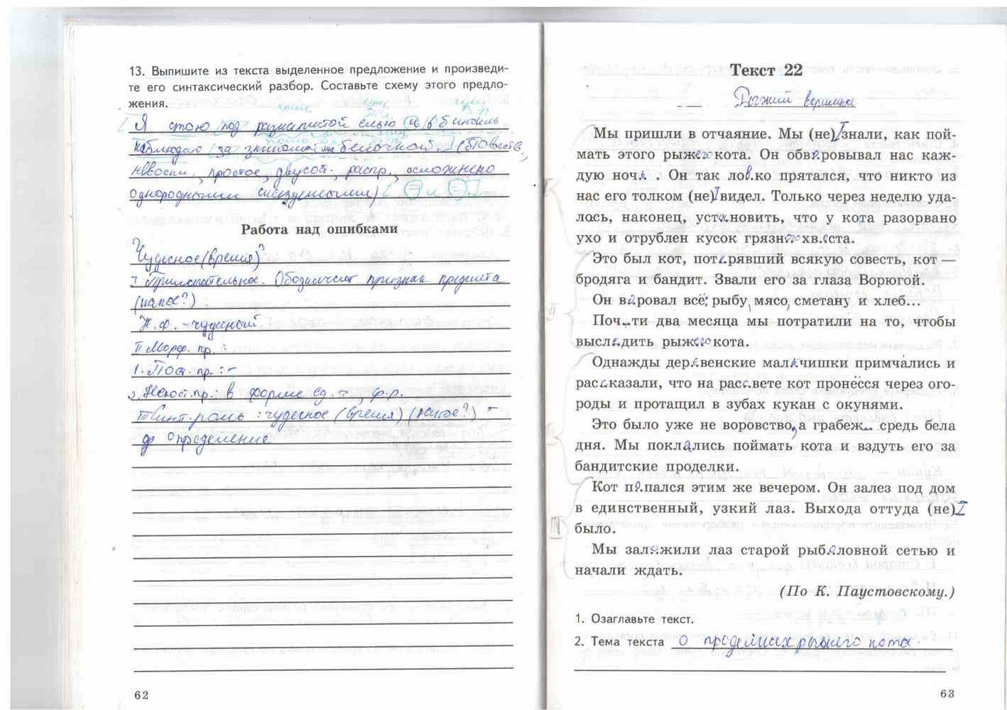 Решения домашних заданий по русскому языку 5 класс Малюшкин А.Б 62-63 упражнение Рабочая тетрадь