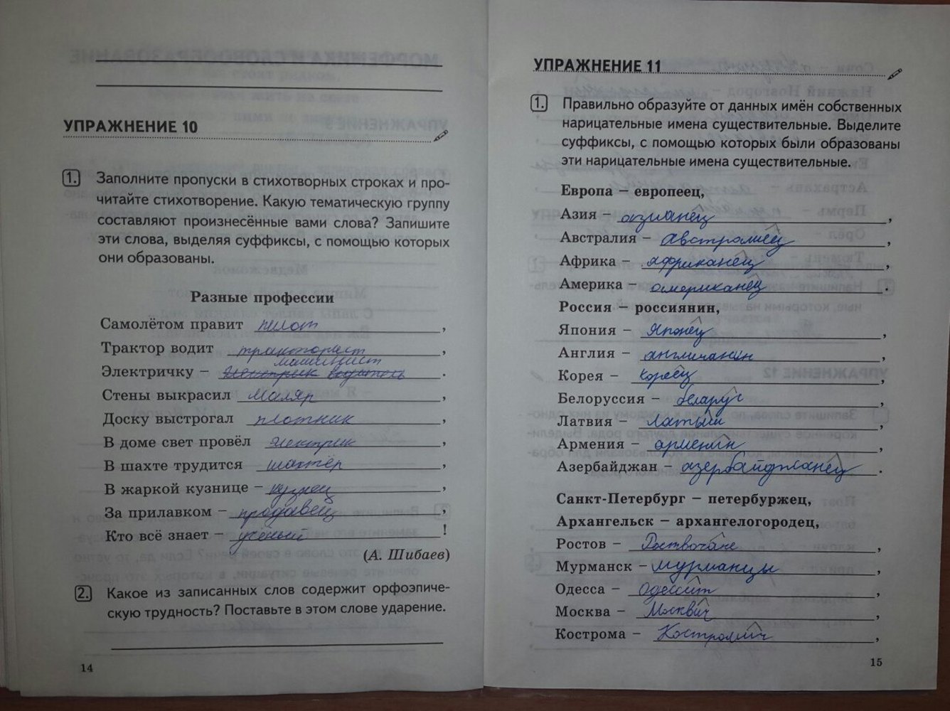 Решения домашних заданий по русскому языку 5 класс Васильевых И.П. 14-15 упражнение Рабочая тетрадь
