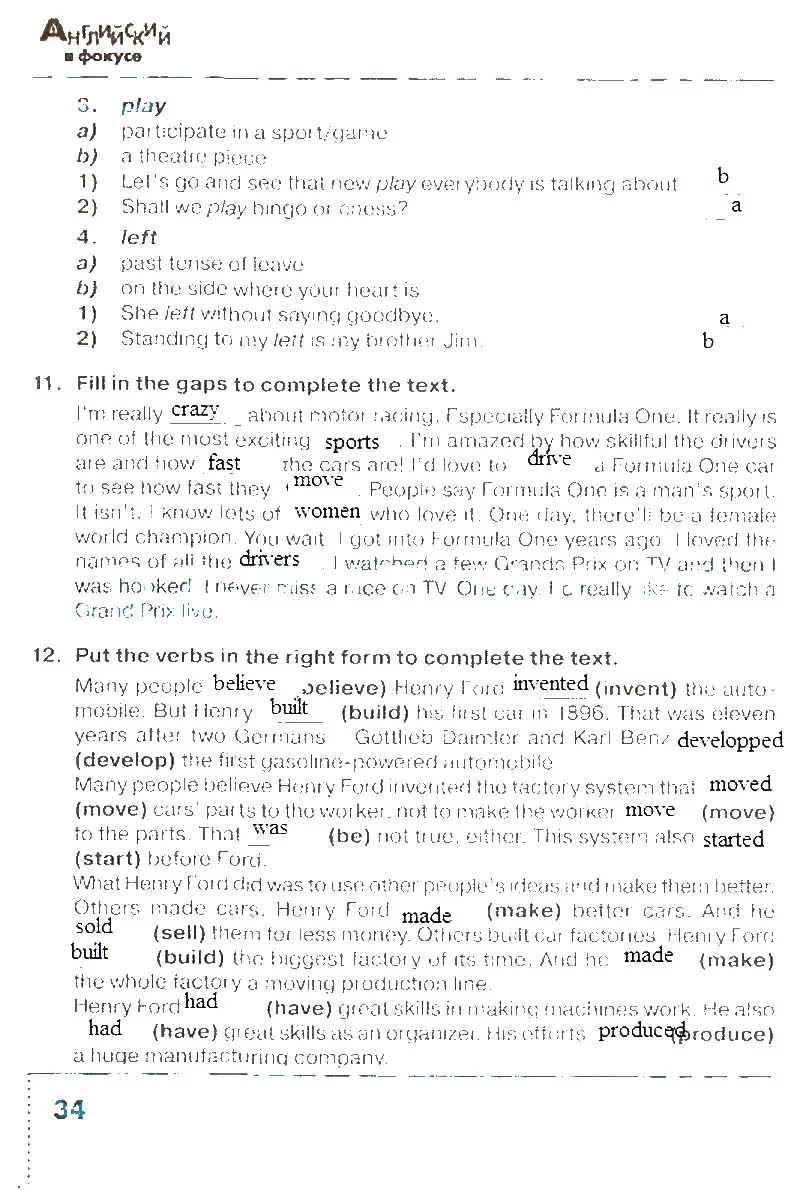 Решения домашних заданий по английскому языку 6 класс Эванс В., Дули Д., Подоляко О., Ваулина Ю. 34 упражнение Тренировочные упражнения в формате ГИА