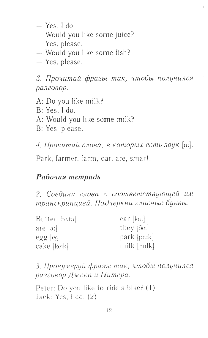 Решения домашних заданий по английскому языку 3 класс Биболетова М. З., Денисенко О.А., Трубанева Н.Н. 12 упражнение Рабочая тетрадь 1 часть
