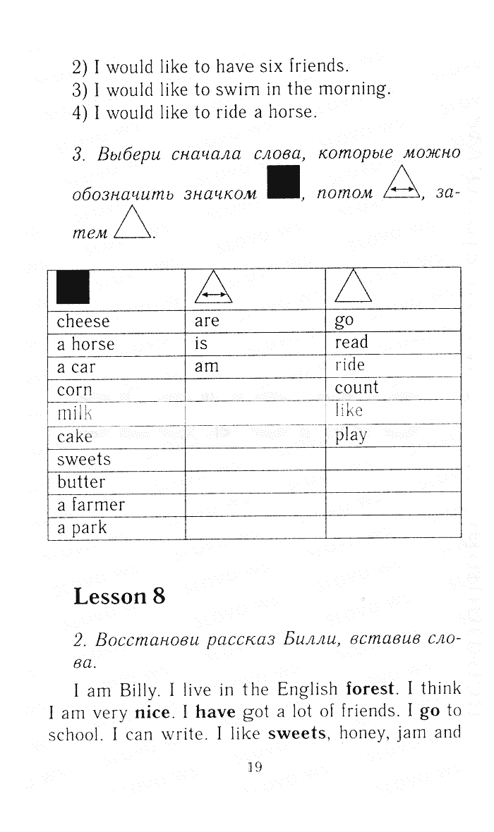 Решения домашних заданий по английскому языку 3 класс Биболетова М. З., Денисенко О.А., Трубанева Н.Н. 19 упражнение Рабочая тетрадь 1 часть