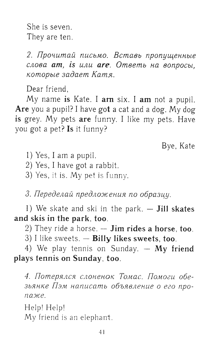 Решения домашних заданий по английскому языку 3 класс Биболетова М. З., Денисенко О.А., Трубанева Н.Н. 41 упражнение Рабочая тетрадь 1 часть