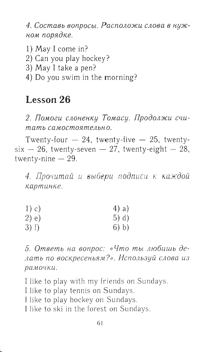 Решения домашних заданий по английскому языку 3 класс Биболетова М. З., Денисенко О.А., Трубанева Н.Н. 61 упражнение Рабочая тетрадь 1 часть