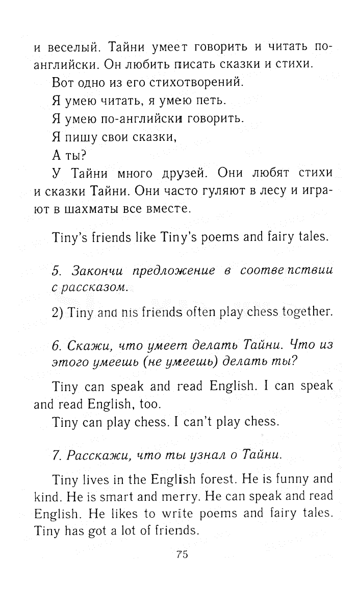 Решения домашних заданий по английскому языку 3 класс Биболетова М. З., Денисенко О.А., Трубанева Н.Н. 75 упражнение Рабочая тетрадь 1 часть