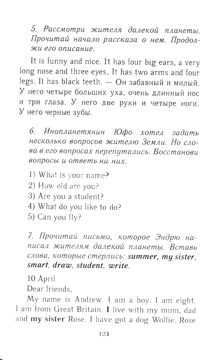 Решения домашних заданий по английскому языку 3 класс Биболетова М. З., Денисенко О.А., Трубанева Н.Н. 123 упражнение Рабочая тетрадь 1 часть