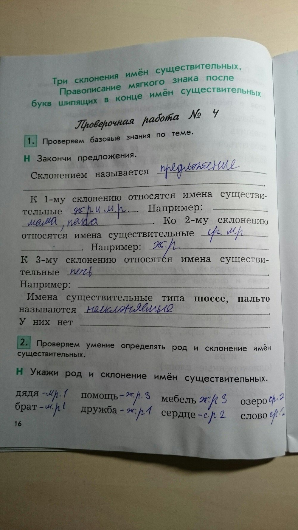 Решения домашних заданий по русскому языку 4 класс Бунеев Р.Н., Пронина О.В. 16 упражнение Рабочая тетрадь