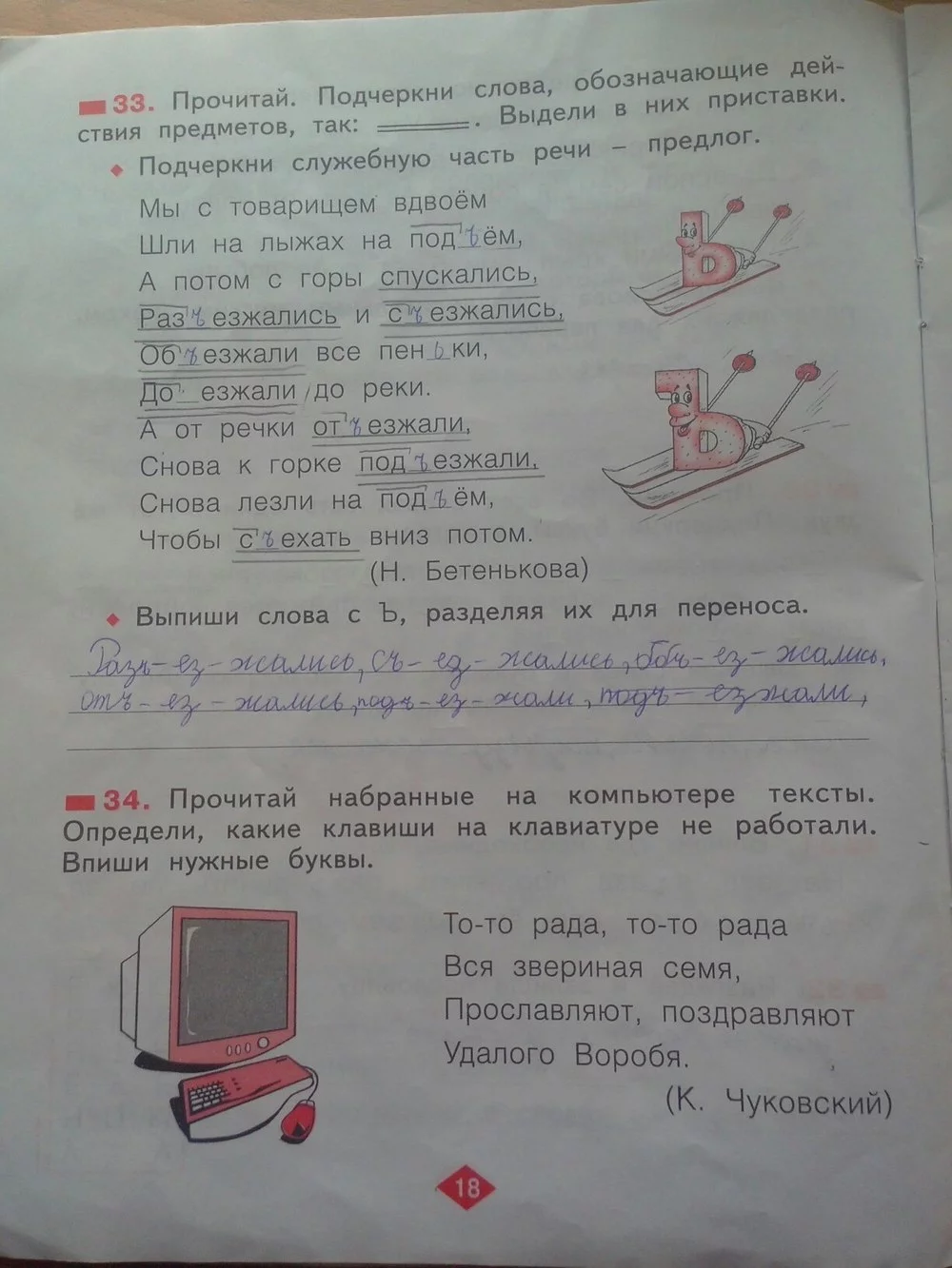 Решения домашних заданий по русскому языку 2 класс Яковлева С.Г. 18 упражнение Рабочая тетрадь