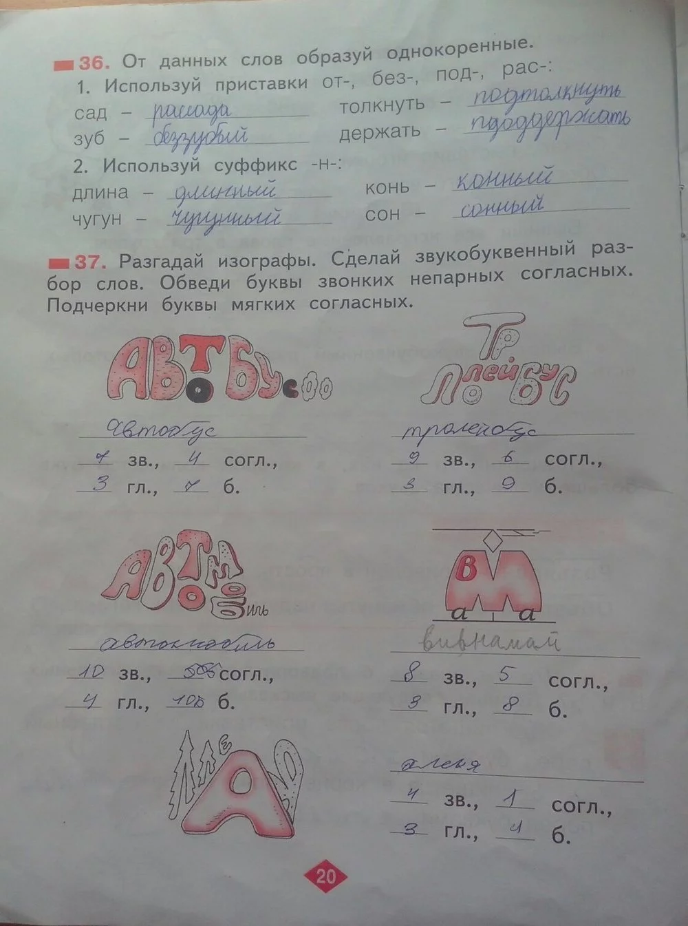 Решения домашних заданий по русскому языку 2 класс Яковлева С.Г. 20 упражнение Рабочая тетрадь