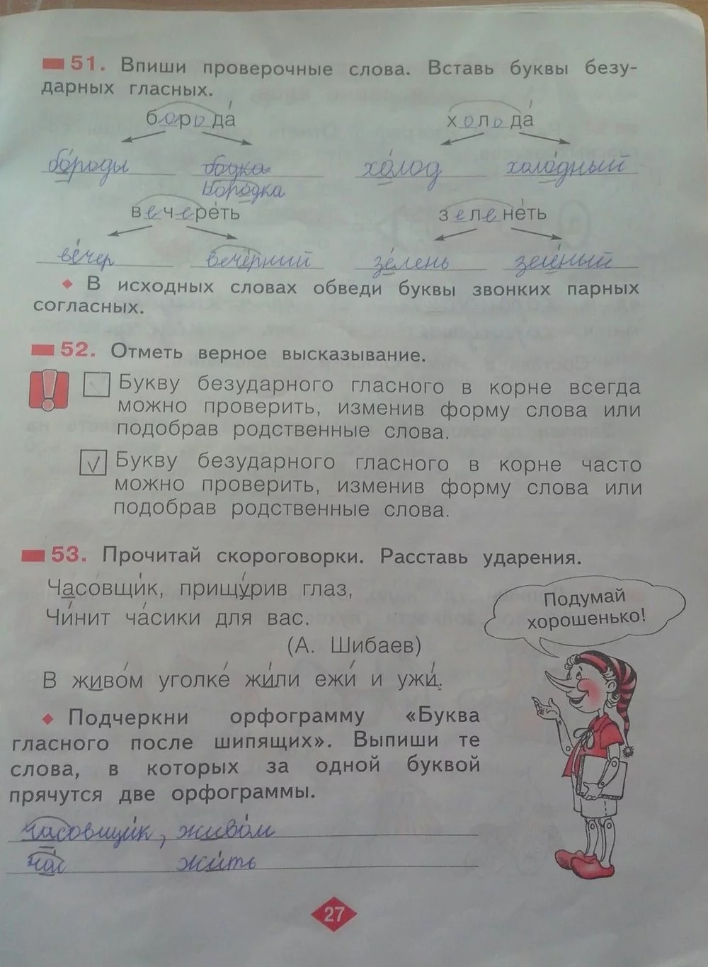 Решения домашних заданий по русскому языку 2 класс Яковлева С.Г. 27 упражнение Рабочая тетрадь